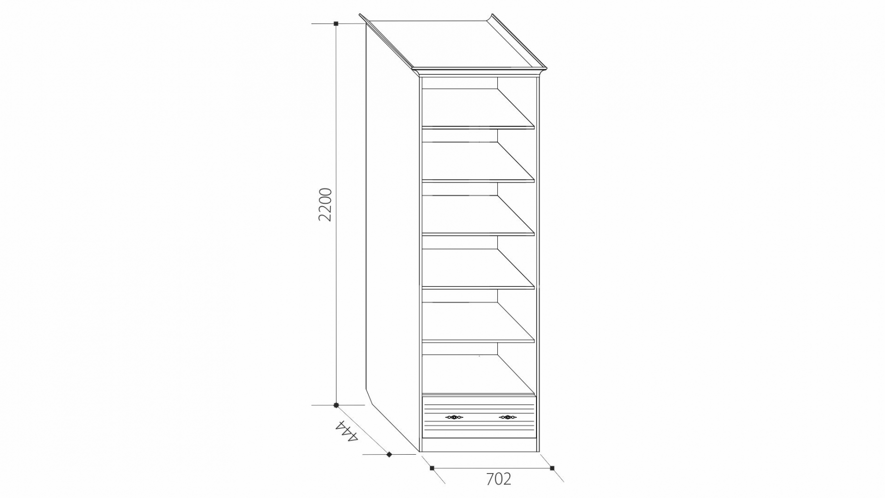 ДхВхШ: 702х2200х444 мм.
